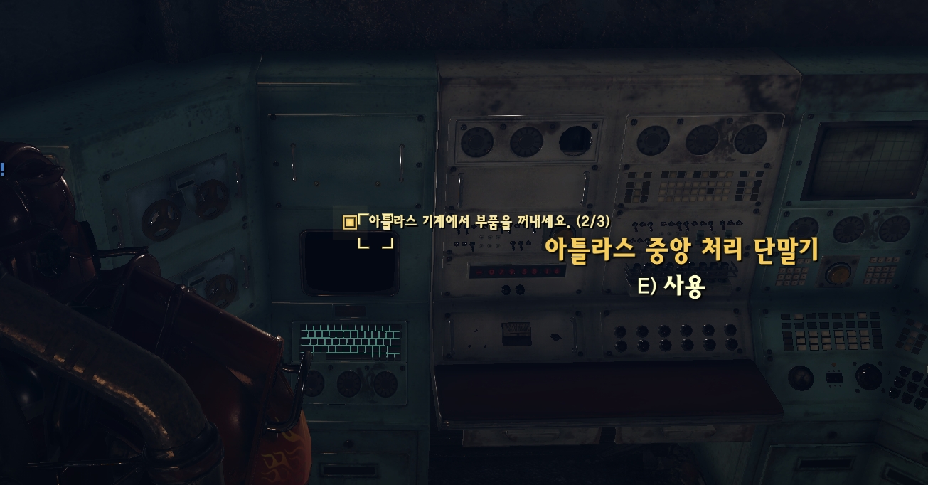 | 지하요세에서 위층으로 향하는 계단으로 이동하여 아틀라스 기계에서 부품을 꺼내주세요. 이때 진행하실때는 가급적이면 스텟에 의한 선택을 하시기 바랍니다. +힘4 / +민첩8 필요 |