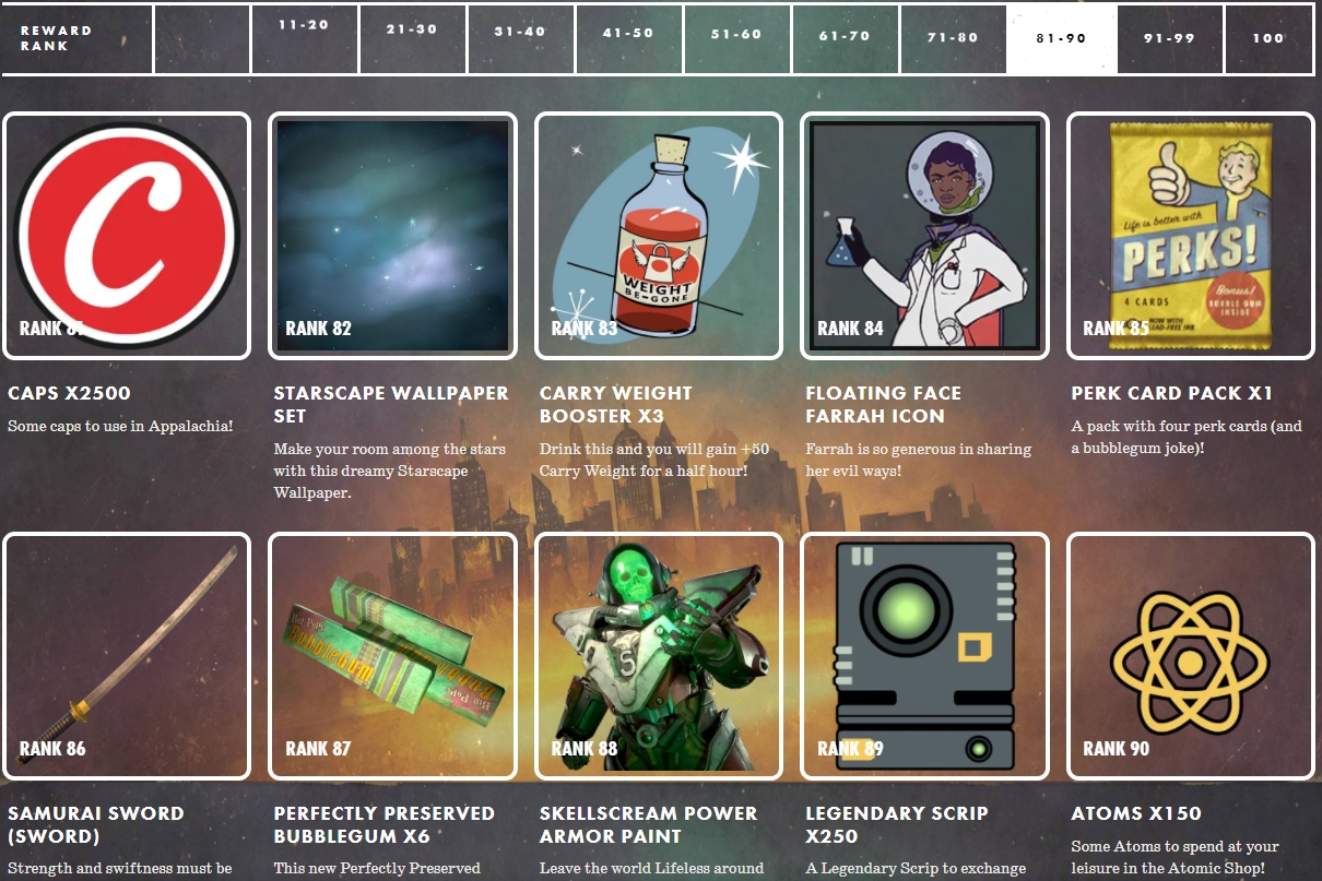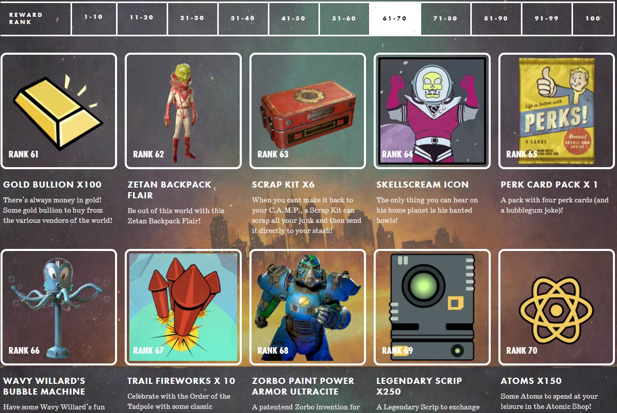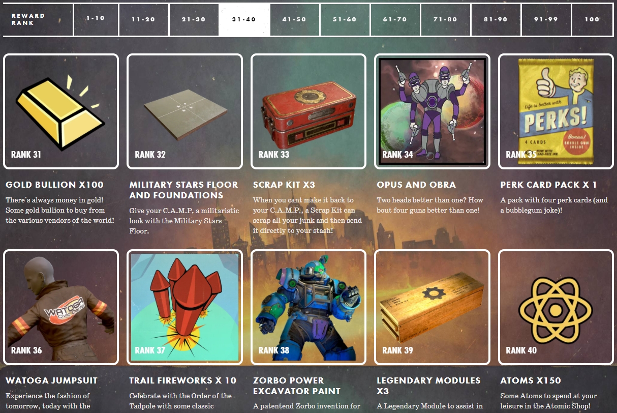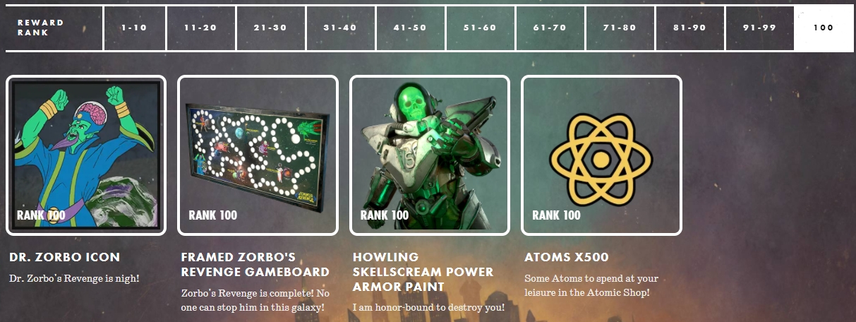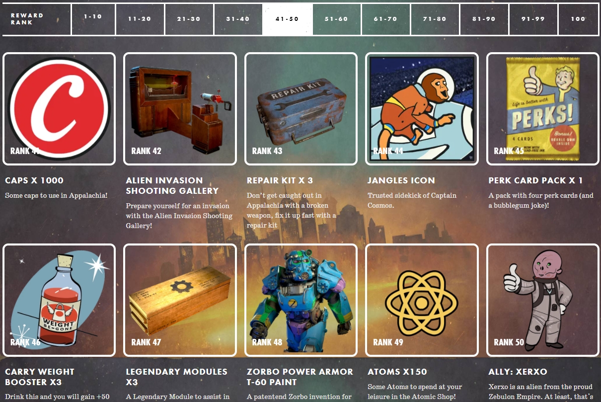 폴아웃76 스코어보드 시즌7이 2021년 12월 8일 새롭게 시작됩니다. 이번 스코어보드도 1 ~ 100까지 스코어를 획득하여 얻는 방법이며, 보상 리스트는 전체적으로 조금 아쉬운 모습을 보여줍니다.