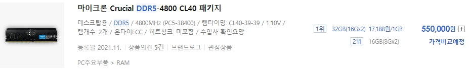 | 스팩으로만 따지자면 DDR5가 우위가 맞지만, 가격 + 효율 등 다양한 시점으로 바라보고 생각해본다면 아직까지 우위는 DDR4에게 주고 싶다. 다나와에 등록된 DDR5 RAM 가격이 보이는가? 너무 비싸다. 아무리 전력 효율이 높아 졌다지만 스펙적으로 0.1v 차이밖에 나지를 않는다. 물론 성능이 높아졌는데 전력이 낮아졌다? 이건 엄청나게 좋다는걸 의미하지만 가격적인 측면에서 메리트를 따지자면 절대 우위가 아니다. |