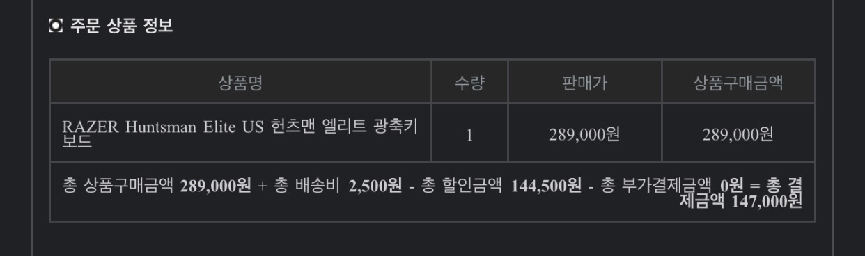 저도 우연히 쿠폰을 구하게 되어 50%에 달하는 할인율로 Razer huntsman Elite를 구매하였네요.