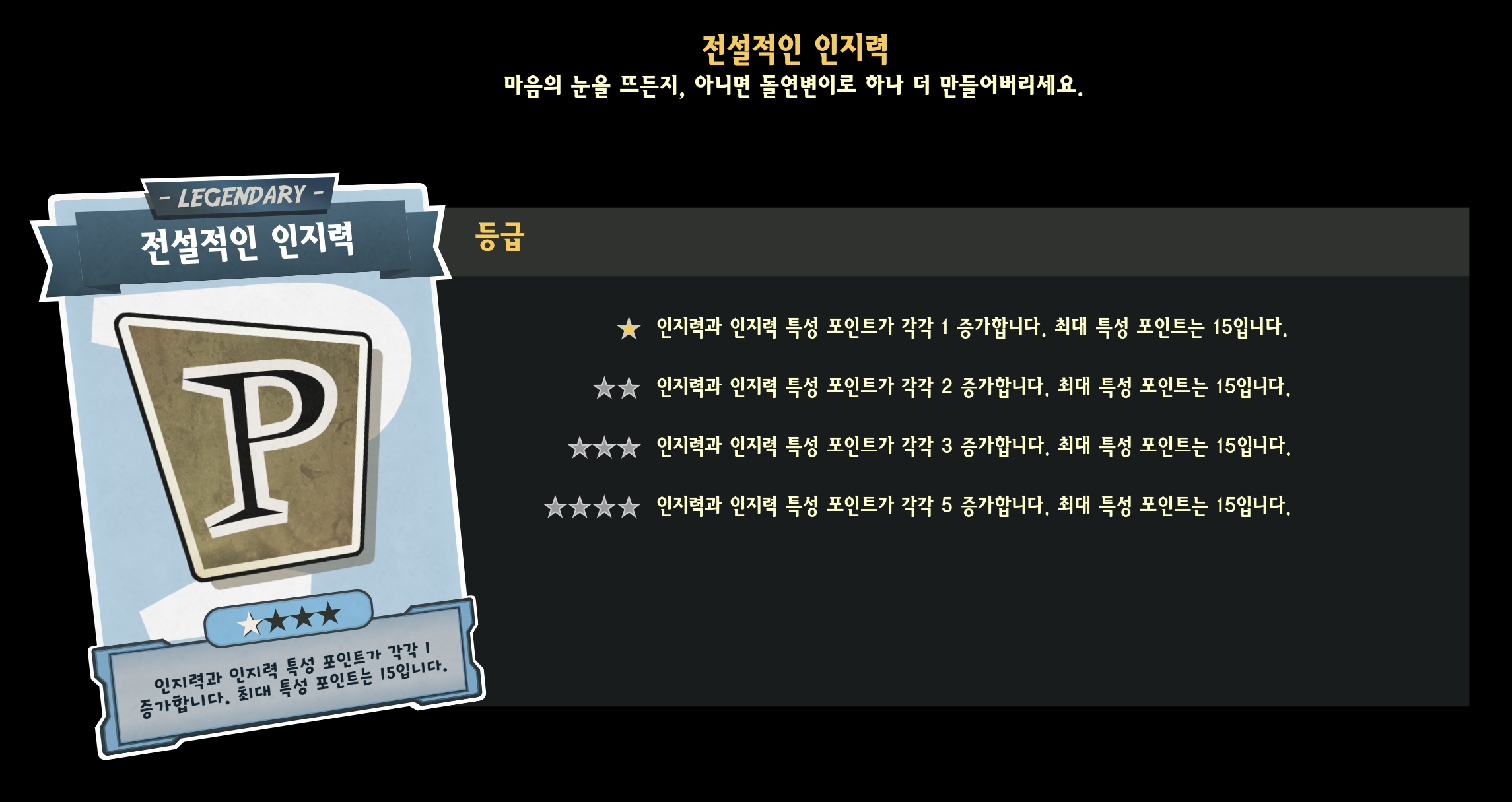 | Legendary Perk Cards 티어별 정리 |