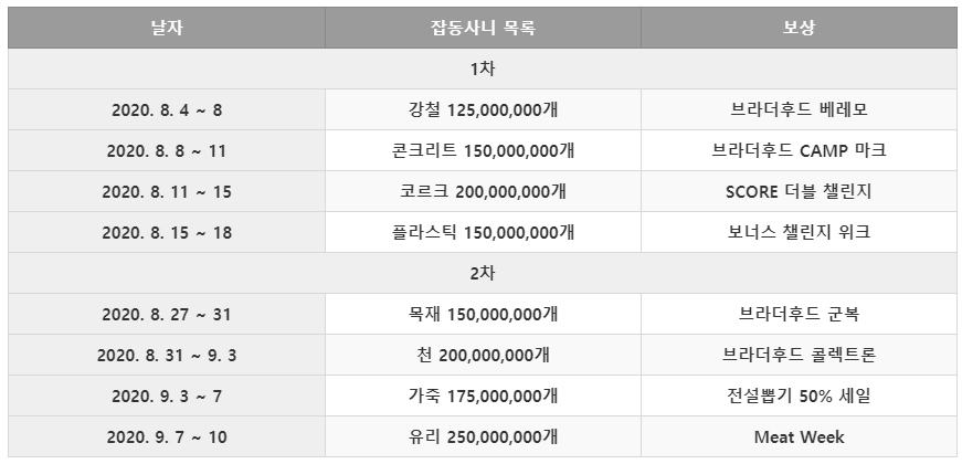 | 3차 이벤트 현황은 다소 이상하다고 생각됩니다. 마지막 8월 15일 기부 현황이 확인이 되지 않았습니다. 따라서 해당 부분에 대해서 아시는 분이 있다면 댓글을 달아주시면 감사할 것 같습니다. |