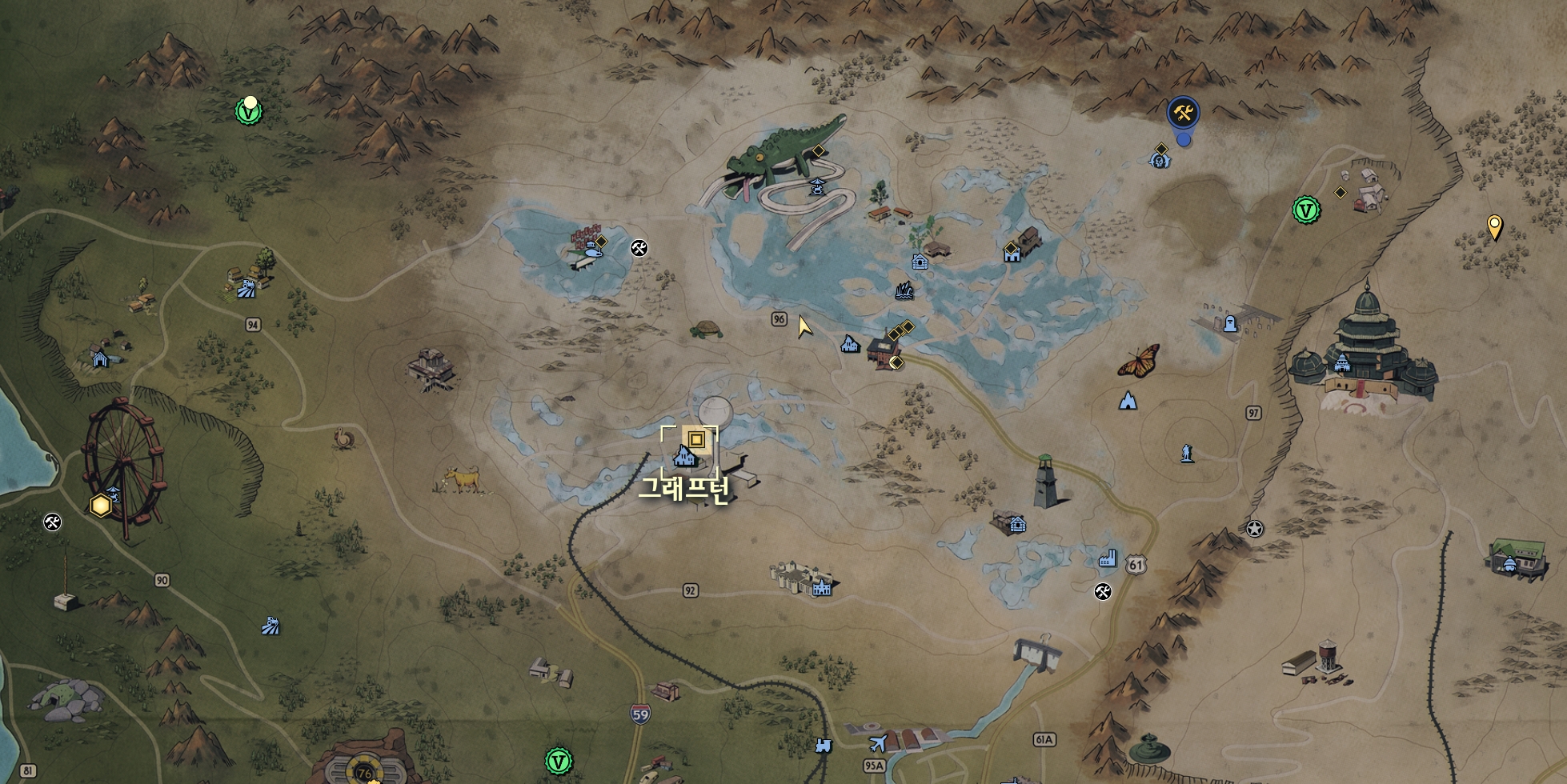 | 웨이비 윌러드의 워터파크에서 워터 밸브를 여세요. 사격장에서 맥주병을 치우세요[0/10] 프리켓 포트의 토큰 디스펜서를 수리하세요. 블랙베어 산장의 체크인 단말기를 수리하세요. |