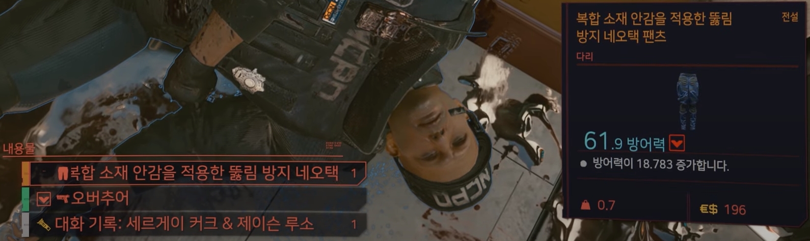 오늘의 리뷰는 사이버펑크2077 전설의상 위치, 네오텍 팬츠 입니다.