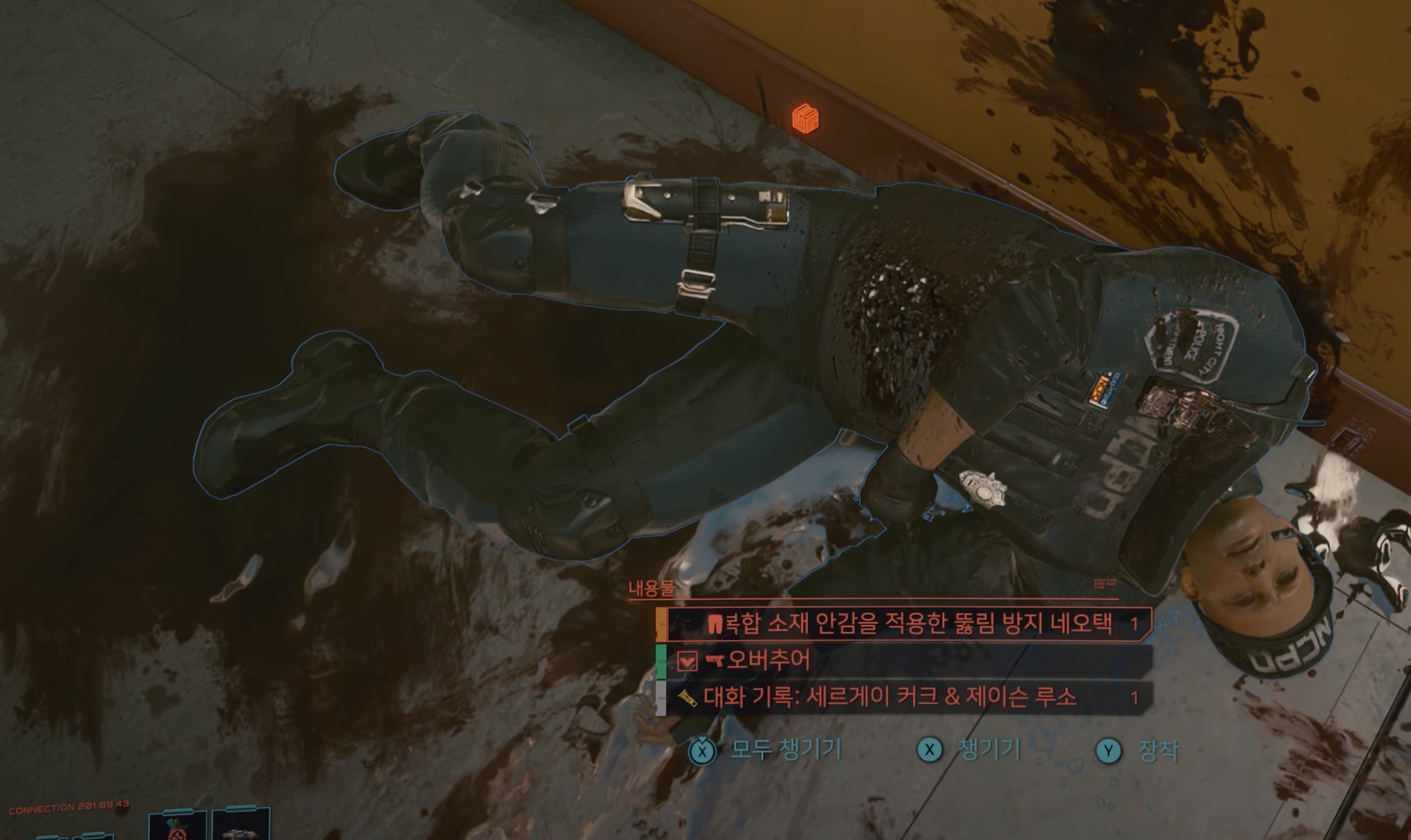 | 차이나타운에서 해당 스샷 이미지 3거리에 있는 NCPD 경찰을 처치하면 획득하실 수 있습니다. |