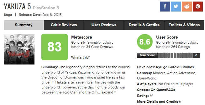 | Yakuza 5 Remastered |